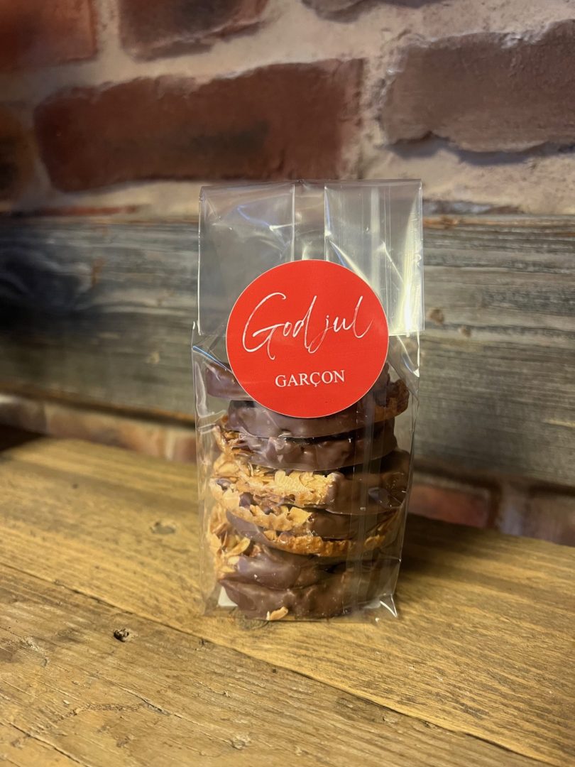 Mandelknas med sjokolade, 8 pk Sprø mandelkjeks med honning, dyppet i sjokolade – søt og sprø